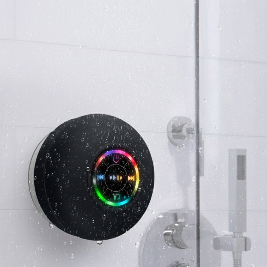 The Waterproof Bluetooth Shower Speaker is your ultimate companion for enjoying music while getting ready or unwinding in the shower. Engineered for convenience and enhanced sound quality, this innovative speaker is perfect for anyone who loves to sing along to their favorite tunes or listen to podcasts while bathing. With a sleek design and powerful features, this device offers an unparalleled audio experience. Equipped with a durable waterproof casing, this speaker is designed to withstand splashes and moisture, making it ideal for use in wet environments. The incorporation of a suction cup allows for effortless attachment to any smooth surface, keeping your music close at hand. Not just a speaker, it's a multi-functional tool that brings music and connectivity into your daily routine. Here's why the Waterproof Bluetooth Shower Speaker stands out: