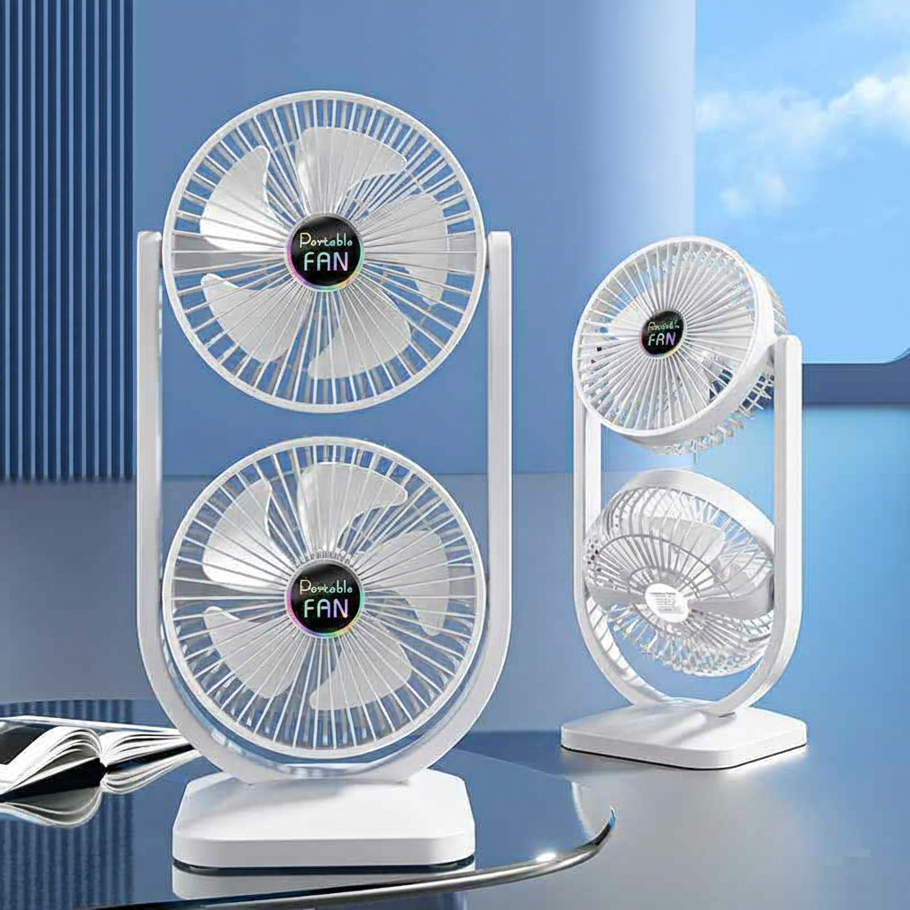 Say goodbye to sweltering heat and hello to refreshing breezes with our Dual-Head Desk Fan. Its user-friendly features and elegant design make it a must-have accessory in any setting. Not only does it look great, but it also performs excellently, providing powerful airflow with minimal noise.