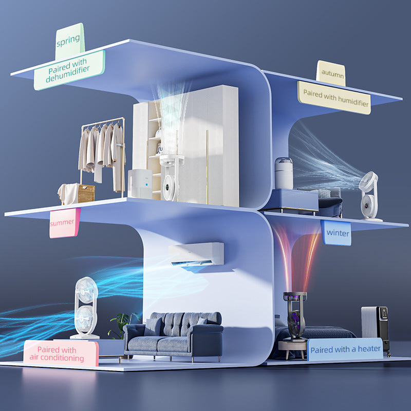 Purple Dual-Head Desk Fan - USB Rechargeable Portable Air Circulator